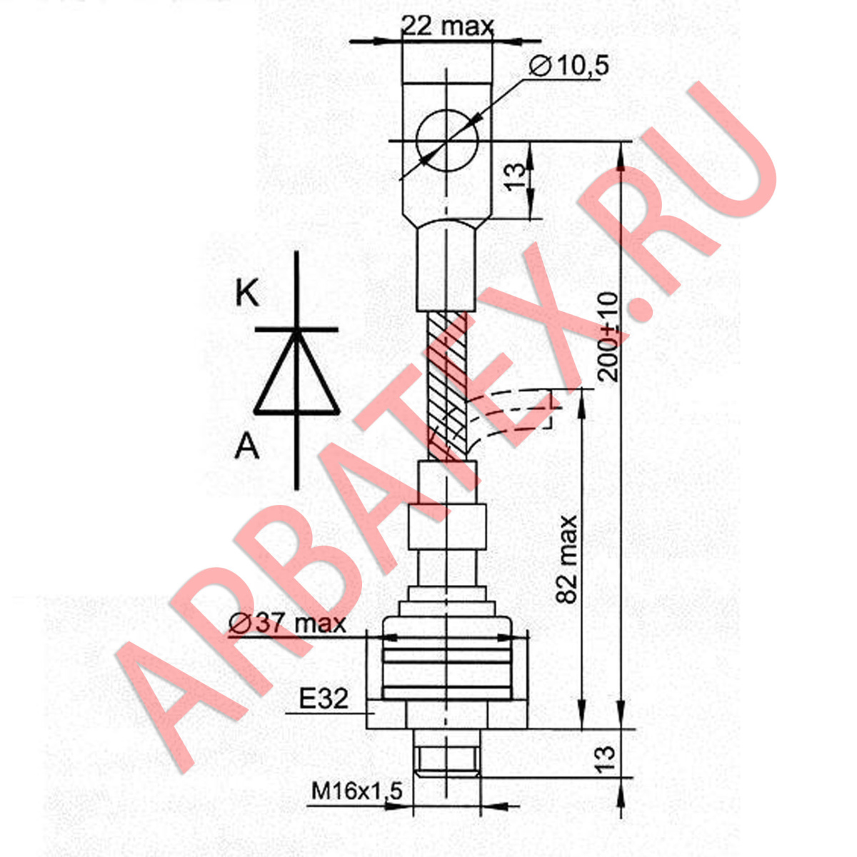 Масса диода не более 298 г.