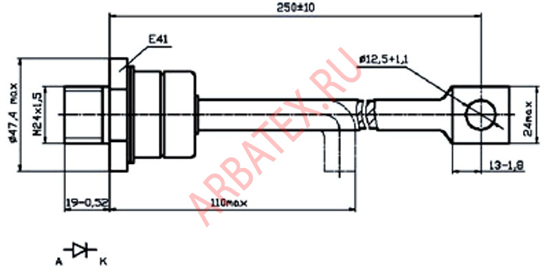 Масса диода не более 560 г.