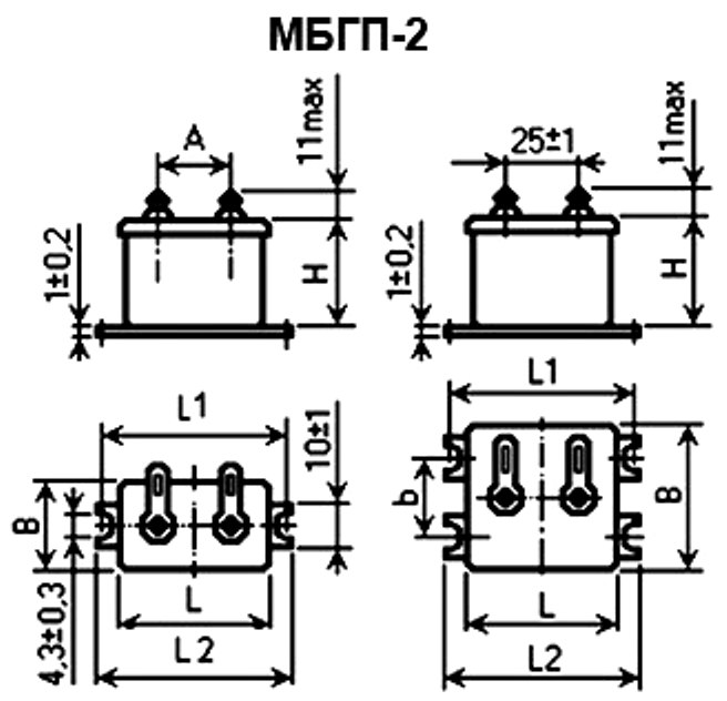 Описание конденсатора МБГП-2 400В 0.51 мкф