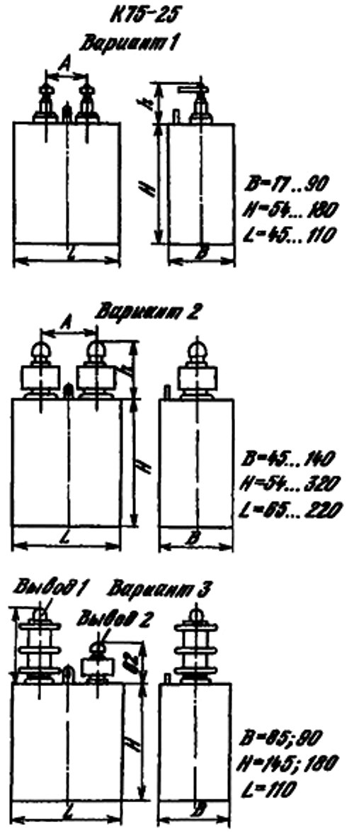 Основные параметры конденсаторов К75-25:
