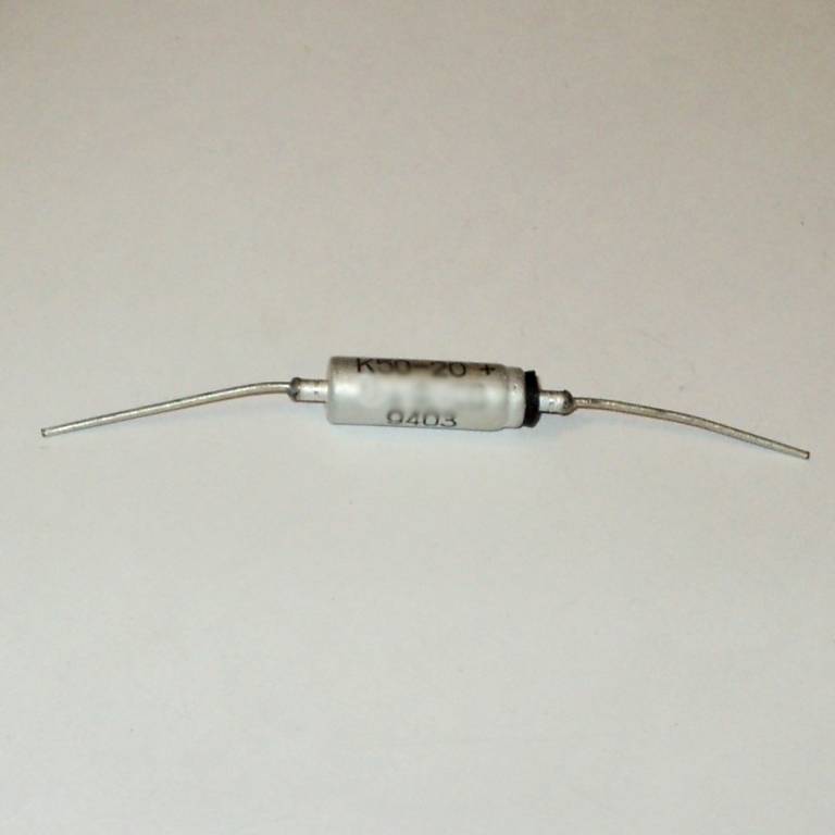 К50-20 6,3в 100 мкф конденсатор оксидно-электролитический постоянной ёмкости в алюминиевом цилиндрическом корпусе (изолированном или неизолированном) с заливкой торца компаундом.