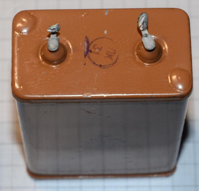 Конденсатор изготовляют в стальных прямоугольных корпусах, герметизированных пайкой, с лепестковыми выводами.