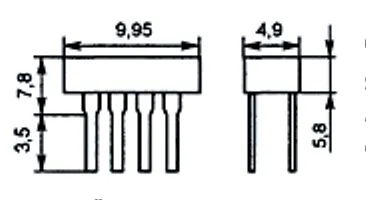 Оформление в пластмассовом корпусе типа КИ12-1 с гибкими выводами расположенными в два ряда.