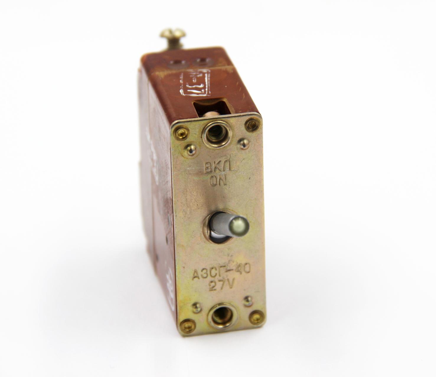 Автомат защиты сети АЗСГ-40 предназначен для защиты электросети самолетных электросистем от токов опасных перегрузок и коротких замыканий при установке в кабинах с обычным освещением.