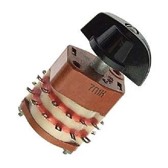 П2Г3-7П1Н переключатель галетный высокочастотный гетинаксо-карболитовый, поворотный роторного типа,применяется для коммутации цепей постоянного и переменного тока в радиоэлектронной аппаратуре. Переключатели крепятся путем фиксации оси в отверстии панели с помощью резьбы оси и гайки переключателя.