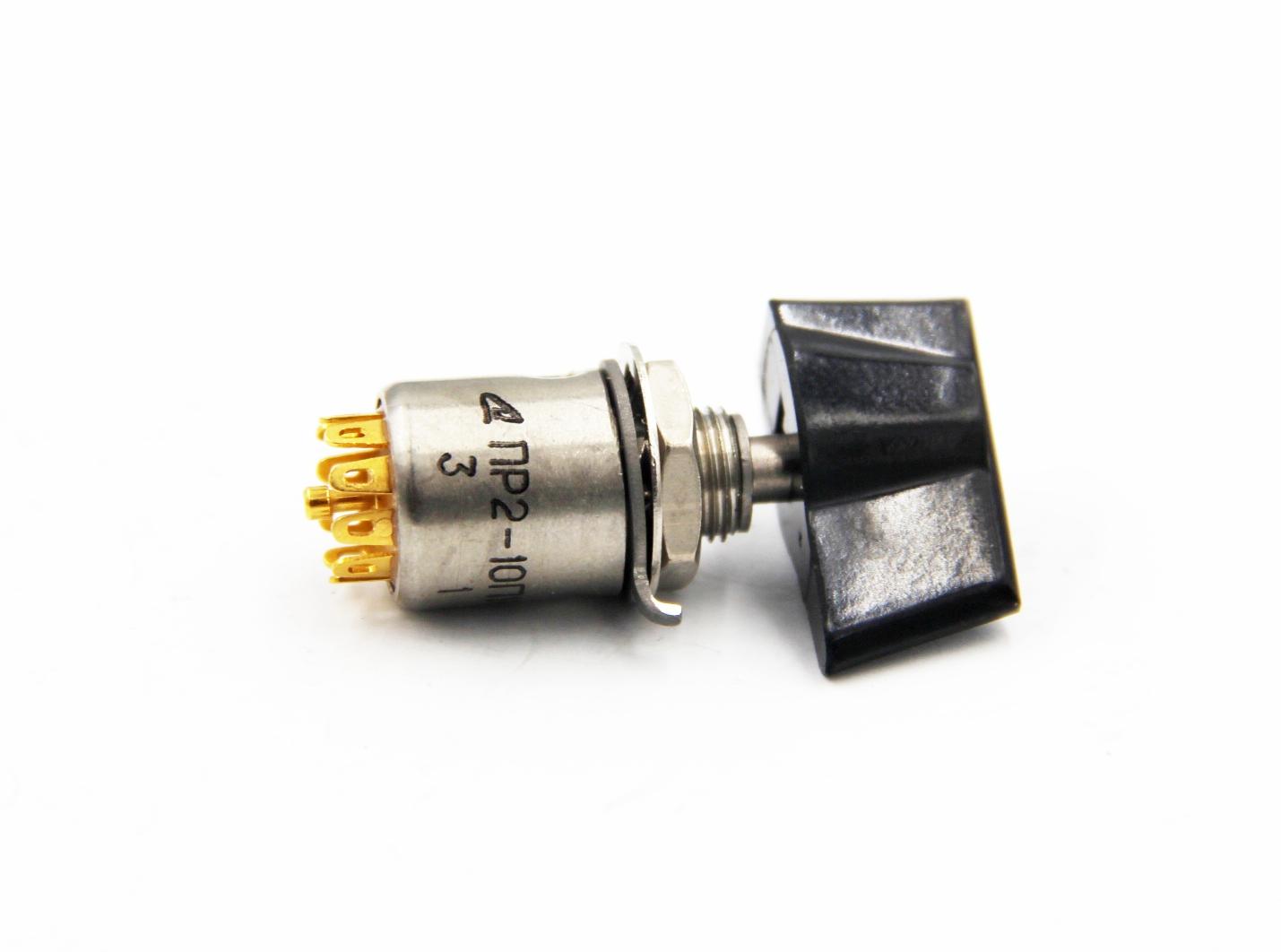 ПР2-10П1НВК переключатель малогабаритный поворотный применяется для коммутации электрических цепей постоянного и переменного токов, для объемного монтажа.