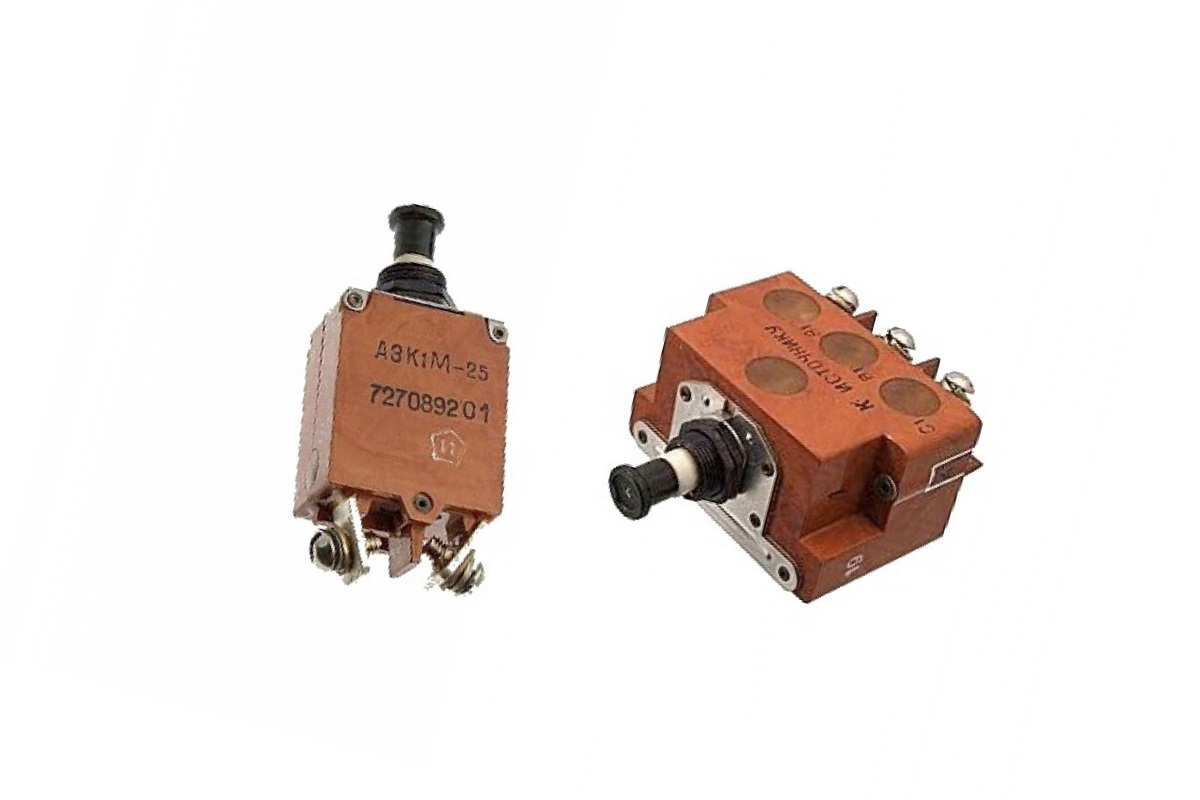 Автоматы защиты сети АЗ3, АЗК1, АЗК3, АЗФ1, АЗР, АЗС – электротехнические одно- или трёхполюсные автоматические выключатели, обеспечивающие защиту электрических цепей от воздействия токовых перегрузок и токов короткого замыкания. Предназначены для эксплуатации в цепях переменного и/или постоянного однофазного или трехфазного тока с напряжением до 200В и номинальным током до 100А.