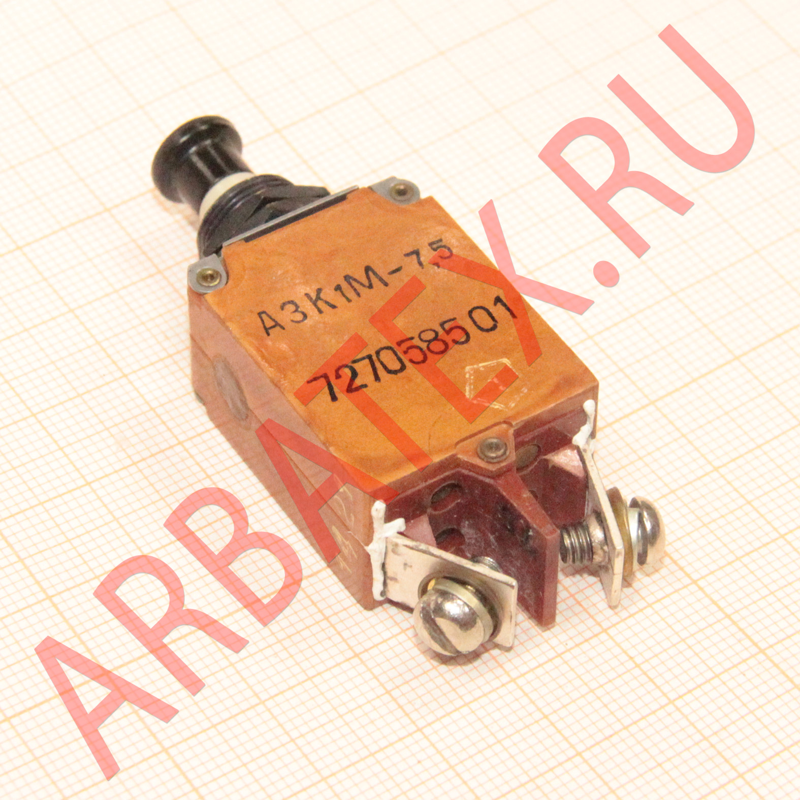 Автомат защиты сети кнопочный однополюсный АЗК1М-7,5 предназначен для защиты электрических цепей постоянного и переменного токов от недопустимых по величине и времени протекания токовых перегрузок и токов короткого замыкания Технические условия: 8Ю3.619.294 ТУ.