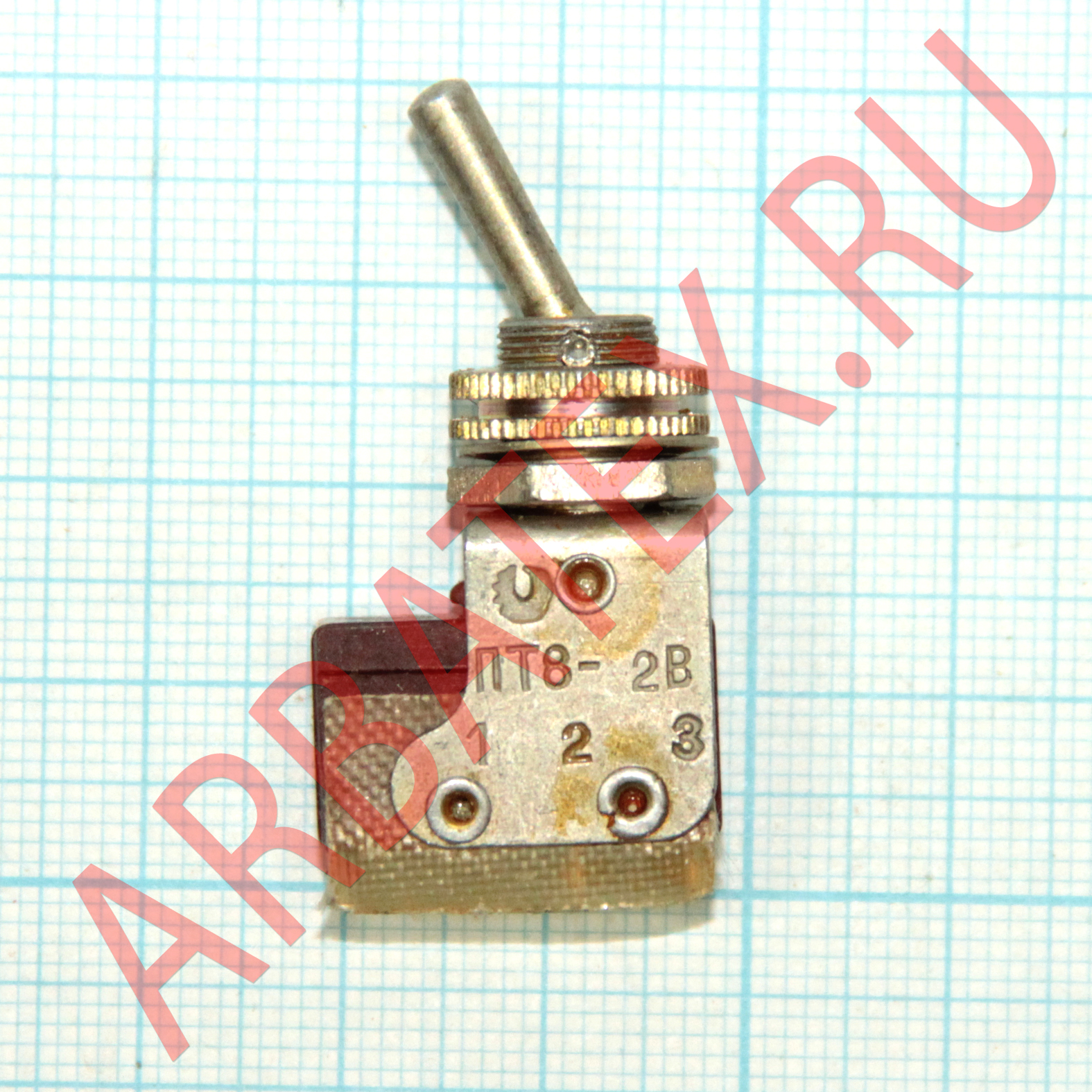 ПТ6-2В переключатель тумблерный, применяется для коммутации цепи сигнализации, питания и управления с напряжением 1х10-4В - 250В, силой тока 1х10-6А - 16А и коммутируемой мощностью до 1900Вт. Тумблеры выполняются с рычажным приводом, позволяющим укреплять резиновый защитный протектор и так и без него. В зависимости от фиксации рычага тумблеры выпускаются с фиксацией в трех положениях, в одном крайнем и среднем положениях и только в среднем положении. Монтаж проводов проводится пайкой.