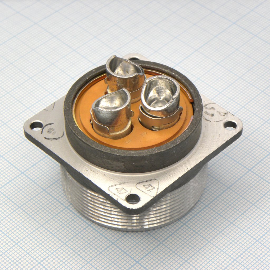 Цилиндрический низкочастотный соединитель 2РТТ40Б3Ш21В пылебрызгозащищенный, предназначен для работы в электрических цепях постоянного и переменного  токов частотой до 3 МГц при напряжении до 850 В (амплитудное значение).