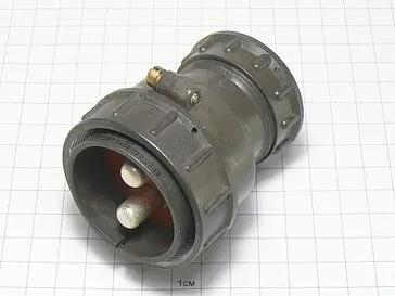Цилиндрический низкочастотный соединитель 2РТТ48КПЭ2Ш24В пылебрызгозащищенный, предназначен для работы в электрических цепях постоянного и переменного  токов частотой до 3 МГц при напряжении до 850 В (амплитудное значение).