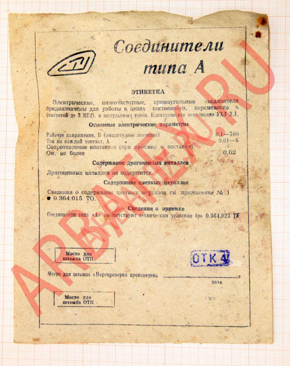 - Сопротивление контактов - 0.01 Ом - Сопротивление изоляции в нормальных климатических условиях - 10 ГОм - Максимальное рабочее напряжение (амплитудное значение) - 600 В - Рабочий ток на каждый контакт - 6 А
