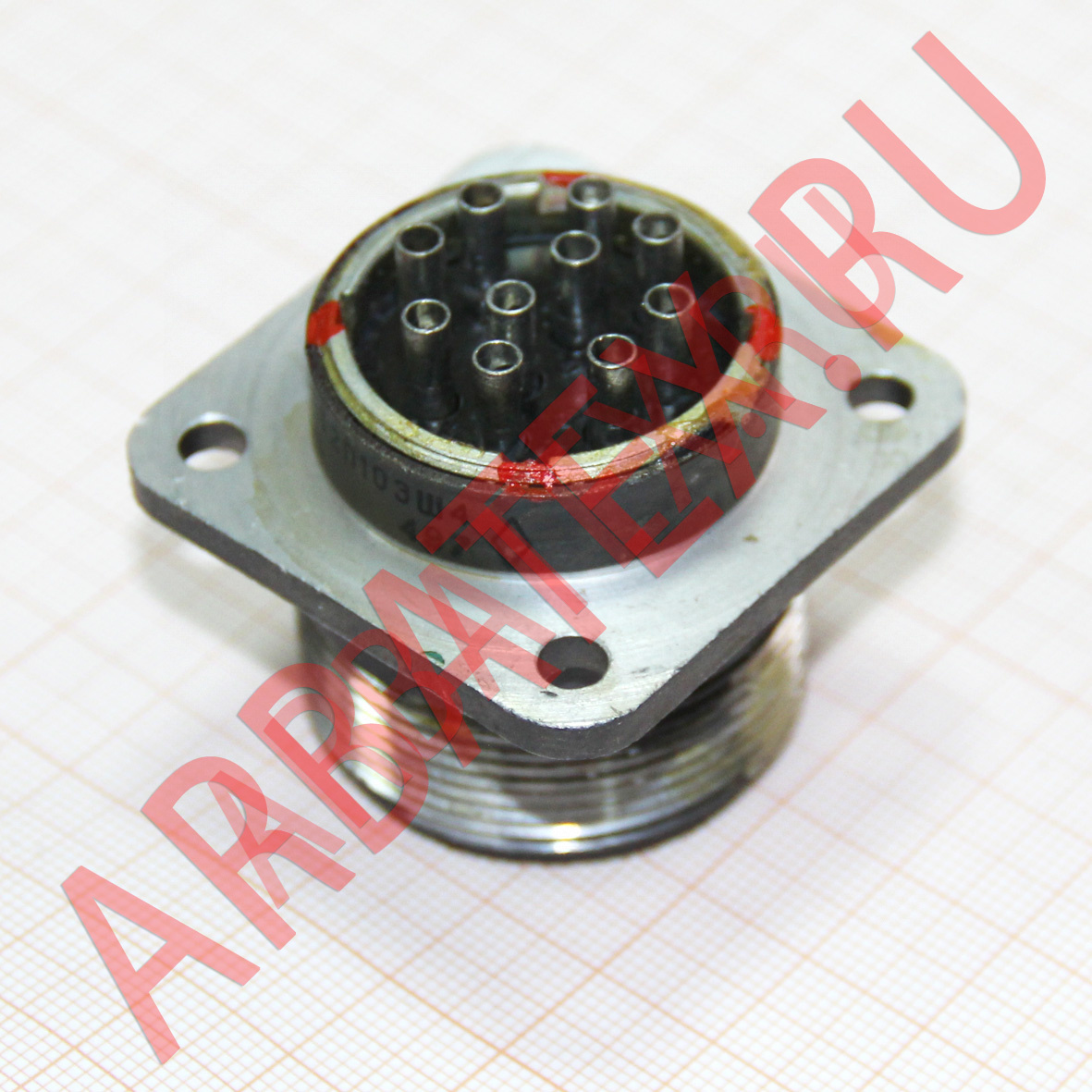 Соединитель СШРГ32П10ЭШ4 имеет один контакт, диаметром в 1мм который в свою очередь имеет серебрянное напыление.