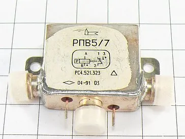 Реле РПВ-5/7 РС4.521.323 негерметичное, высокочастотное, поляризованное, двухпозиционное, с одним переключающим контактом, предназначено для коммутации электрических цепей постоянного и переменного тока частотой до 500 МГц при мощности до 24 Вт и частотой до 1000 МГц при мощности до 2 Вт.