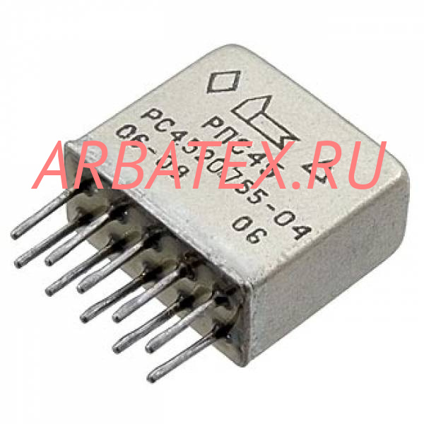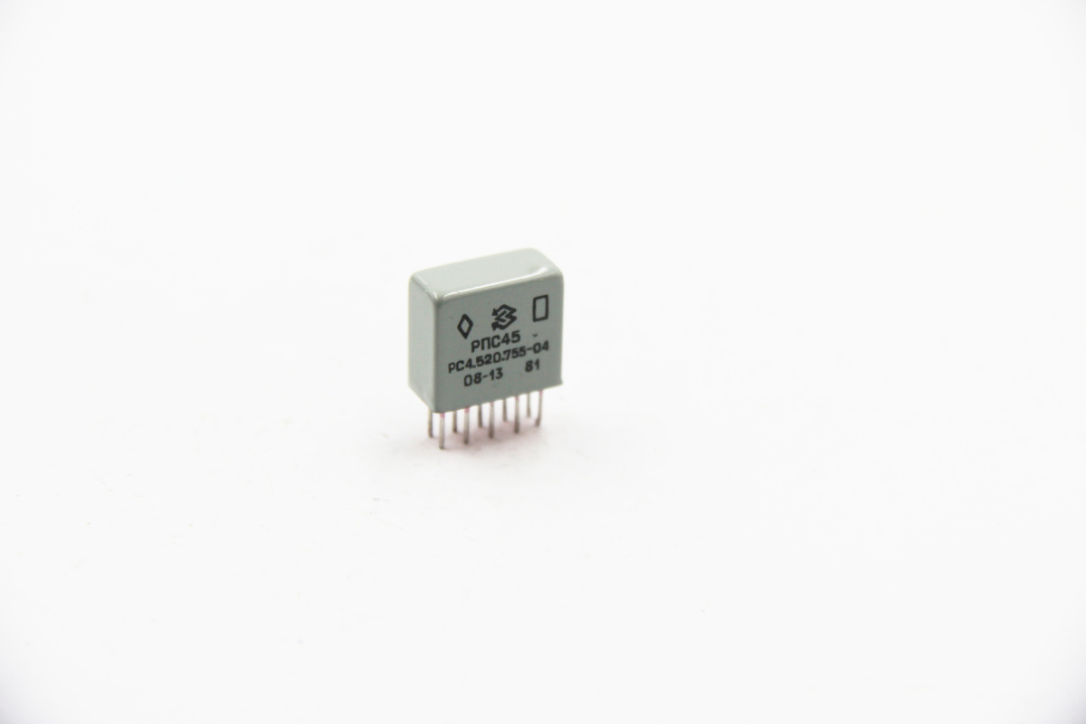 Реле РПС45 РС4.520.755-04 герметичное, поляризованное, двустабильное, с двухпозиционной регулировкой, с двумя переключающими контактами, предназначено для коммутации электрических цепей постоянного и переменного тока частотой до 10000 Гц.