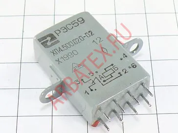 Реле РЭС-59Б ХП4.500.020-02 герметичное, одностабильное, двухпозиционное, с одним или двумя переключающими контактами, питаемое постоянным током. Предназначено для коммутации электрических цепей постоянного и переменного тока частотой от 50 до 1100 Гц.
