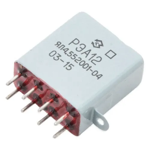 Реле РЭА-12 ЯЛ4.552-001-04 герметичное, высокочастотное, с двумя переключающими контактами, предназначено для коммутации электрических цепей постоянного тока и высокочастотных цепей переменного тока частотой до 1000 МГц.