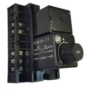 РСВ19-12 0,1-10 сек 220В реле времени применяется для получения независимой выдержки времени. Реле времени применяется в схемах, где необходимо автоматически выполнить какое-то действие через определенный промежуток времени. Механизм реле размещен в пластмассовом корпусе, на лицевой части реле выведен переключатель поддиапазона установок и ручка установки выдержки времени.