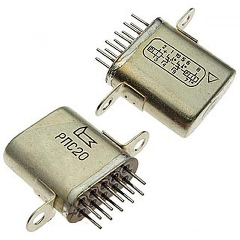 Реле РПС-20 РС4.521.761 негерметичное, поляризованное, двустабильное, с двумя элементами на переключение, предназначено для коммутации электрических цепей постоянного и переменного тока частотой 50-400 Гц.