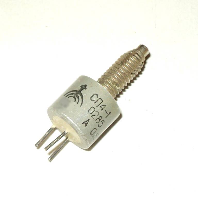 СП4-1Б 0.25Вт 4,7кОм резистор подстроечный, цилиндрический, с фиксацией на панели, для навесного монтажа одинарный, однооборотный со стопорением вала, круговым перемещением подвижной системы. Предназначен для работы в цепях постоянного и переменного токов в непрерывных и импульсных режимах.