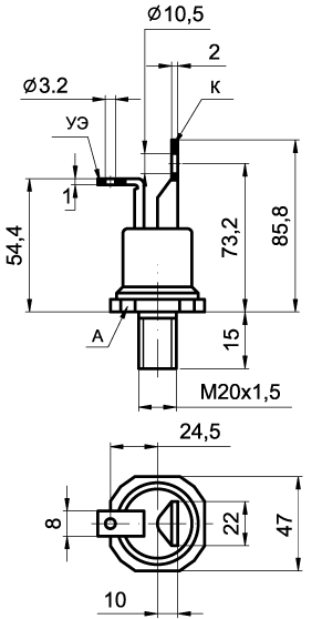 ТЧ80-10 - быстродействующий тиристор штыревого исполнения.